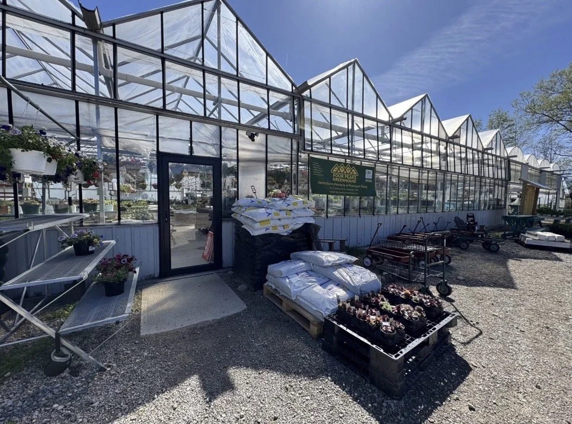 Four Peaks Greenhouse is Lake Erie’s destination greenhouse, located in Vermilion, Ohio. Each season we grow more than 40,000 plants right here in our greenhouse, including many unique varieties you won’t find anywhere else. Through the Great Lakes Flower Guild, we will be growing ProCut sunflowers for cut flower production, along with supplying wholesale hanging baskets and starter vegetable and herb plants for local growers and florists. Our mission is to grow exceptional plants locally and help strengthen the network of flower farmers and growers across the Great Lakes region. This greenhouse is in its second generation and has been growing for over 30 years.